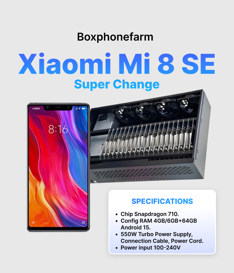 Xiaomi Mi 8 SE Super Change is the new generation 2025 boxphone, developed by GenFarmer exclusively for professional operators who want to farm accounts with stability, security, and long-term durability.